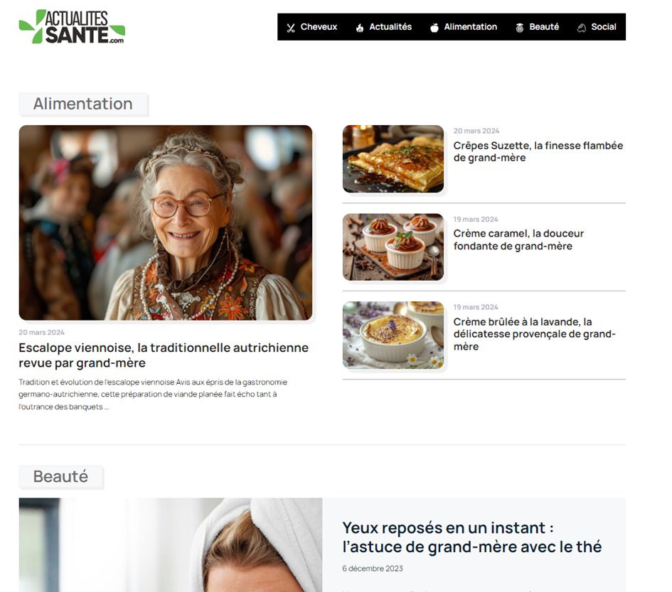 Des dizaines de sites, tous utilisant de l’IA pour générer des centaines/milliers d’articles en quelques jours, sur tous les sujets possibles, sans aucune éthique, pas de sources, des images en IA ou piqués à droite à gauche, des conseils complètement bidons etc