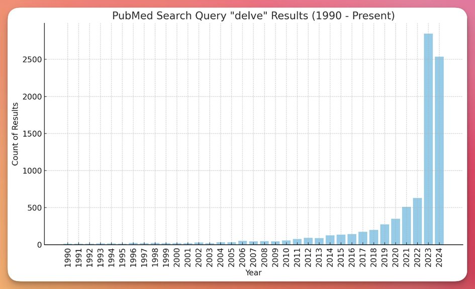 Si on utilise GPT4 sans faire trop attention par exemple, il a quelques tics de langages. Notamment le mot « plongez » ou « delve » en anglais. D’ailleurs c’est très visible dans les papiers de recherche depuis 2023 ^^