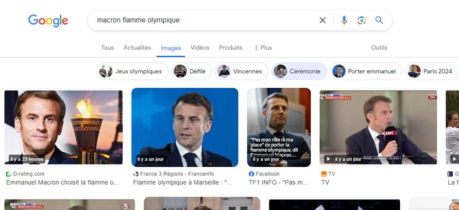 L’image a été changée mais la recherche « macron flamme olympique » met toujours D-rating en premier… Cela peut donc créer de la désinformation