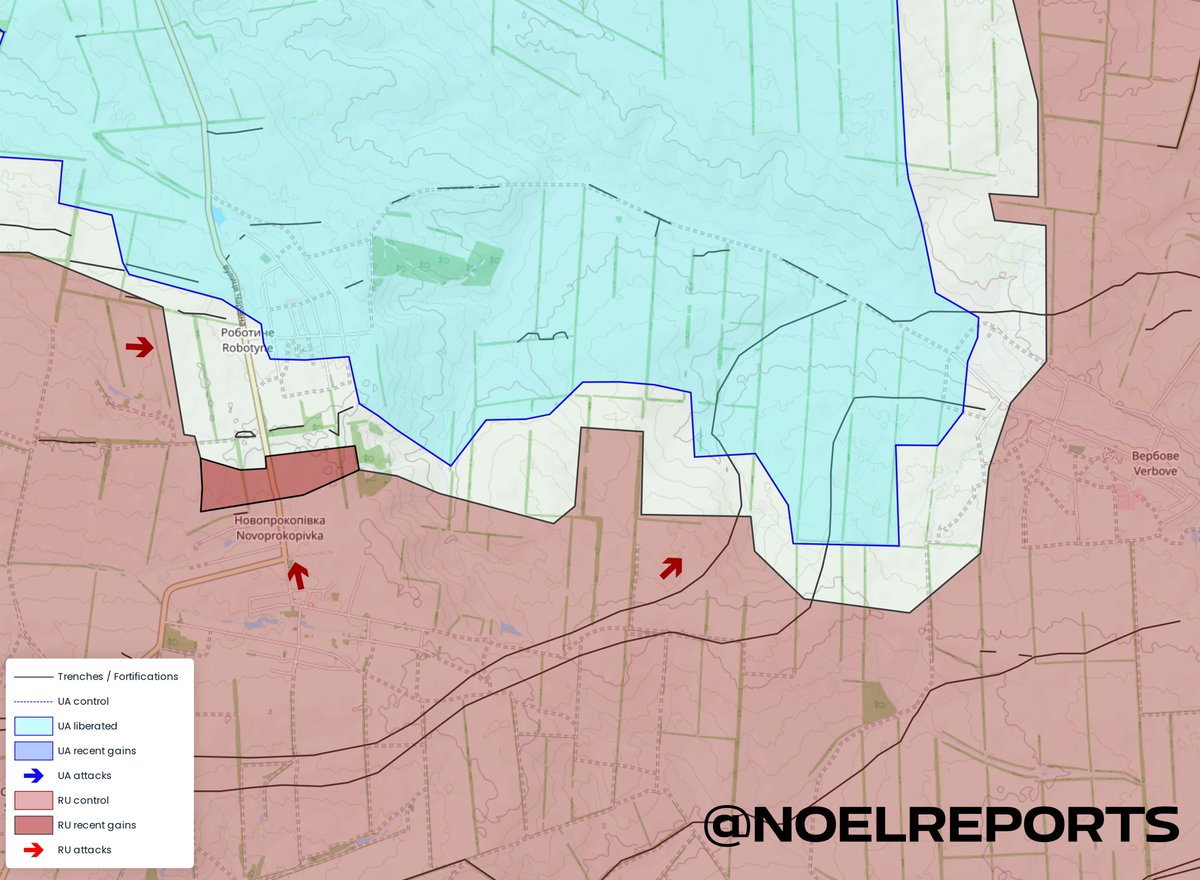 ➡️A review of the situation south of Robotyne, adjusting the area under Russian control. The trench network south of Robotyne is still disputed, and the gray zone in Robotyne itself has also been expanded. Neither party controls the southern part of Robotyne.