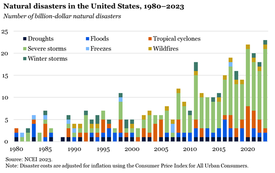 The costs of climate change had skyrocketed, with the average number of (inflation-adjusted) billion-dollar disasters rising from under 5 annually to 20. 3/