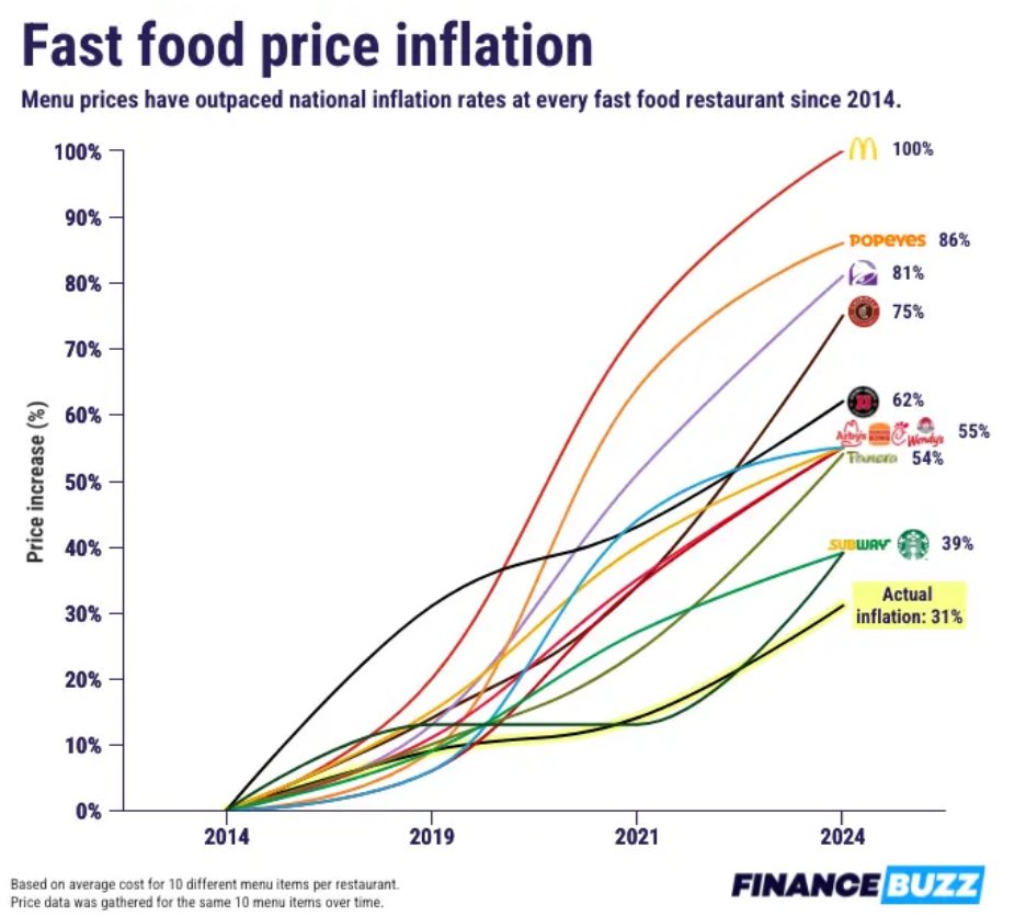 In that time the biggest fast food chains raised prices much, much faster than inflation.