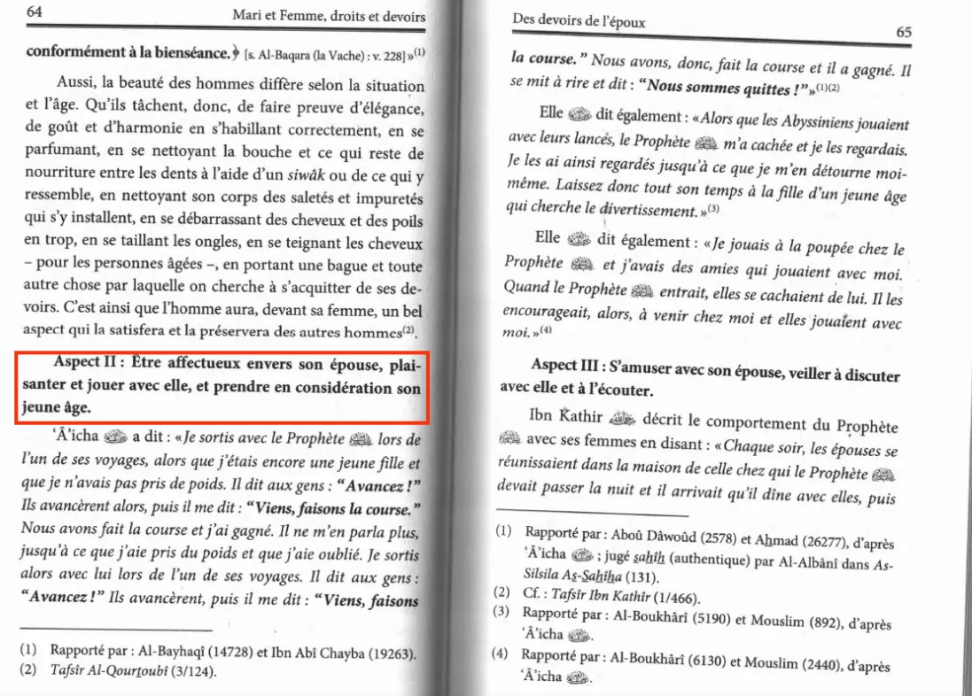🔸"Être affectueux envers son épouse, plaisanter et jouer avec elle et prendre en considération son jeune âge."⬇️