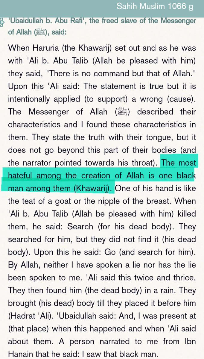 🔸Sahih Muslim 1066g : "Le plus haïssable parmi la création est un homme noir parmi eux." ⬇️