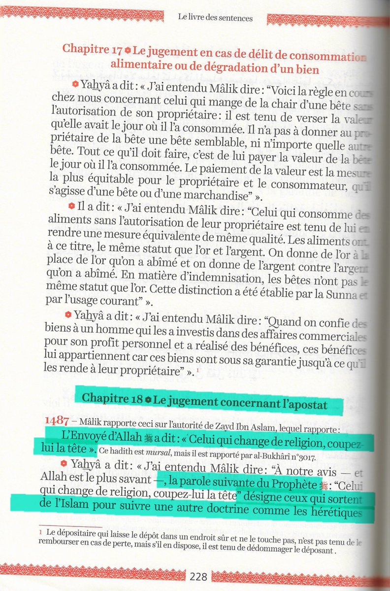 L'envoyé d'Allah a dit : "Celui qui change de religion, coupez lui la tête."