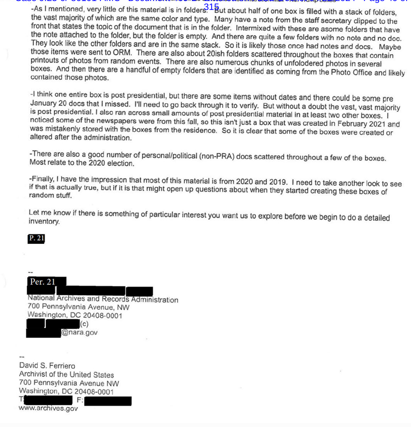 Contrary to public and legal assertions, NARA was working with DOJ/White House to craft a criminal referral by Sept. 2021--FIVE MONTHS before the "official" referral by NARA to DOJ in Feb 2022.