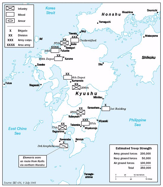 The Japanese forces in Kyushu were armed to the teeth, heavily entrenched, and armed with everything from what was left of the Japanese air force to chemical weapons.