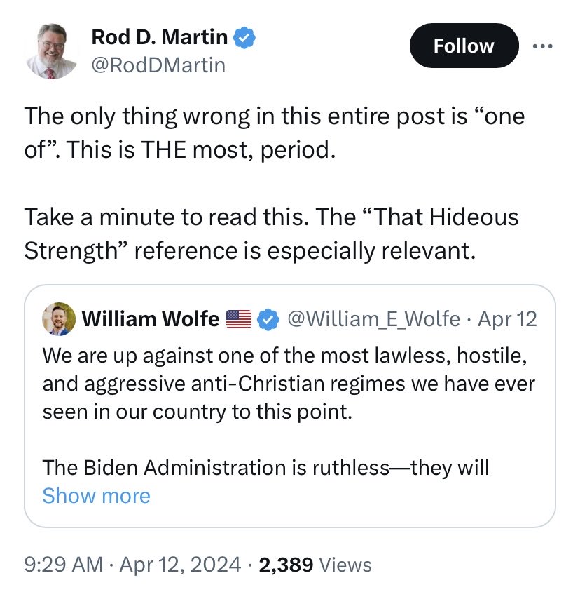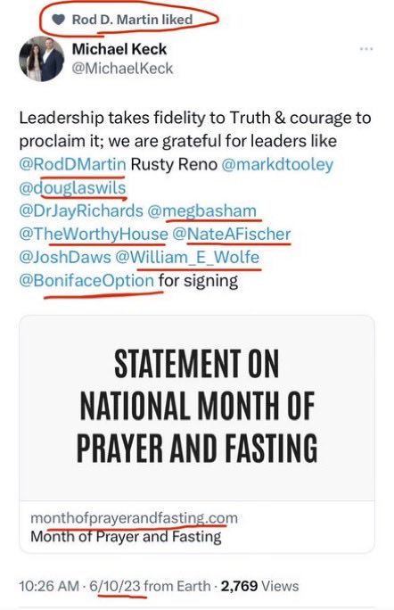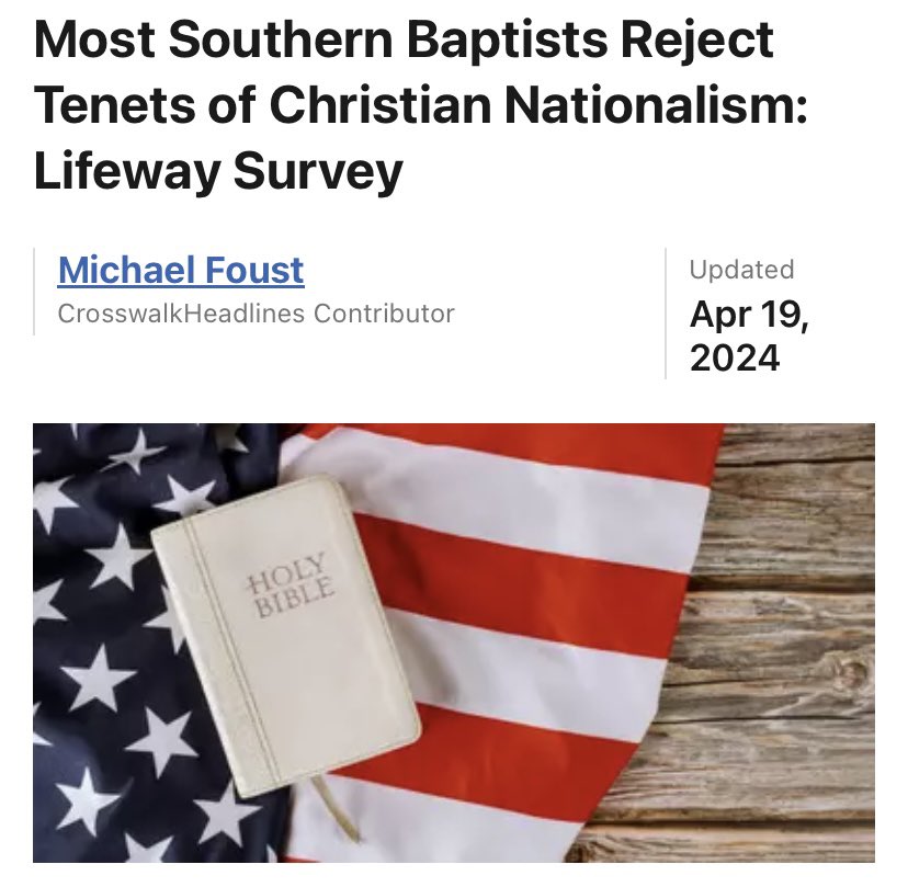 “Most Southern Baptists Reject Tenets of Christian Nationalism: Lifeway Survey” (But a well funded new venture aims to change this. It’s led by WILLIAM WOLFE, a self-professed “Christian Nationalist” & ally of ROD MARTIN, former senior advisor to billionaire PETER THIEL.) 1/ crosswalk.com/headlines/mich…