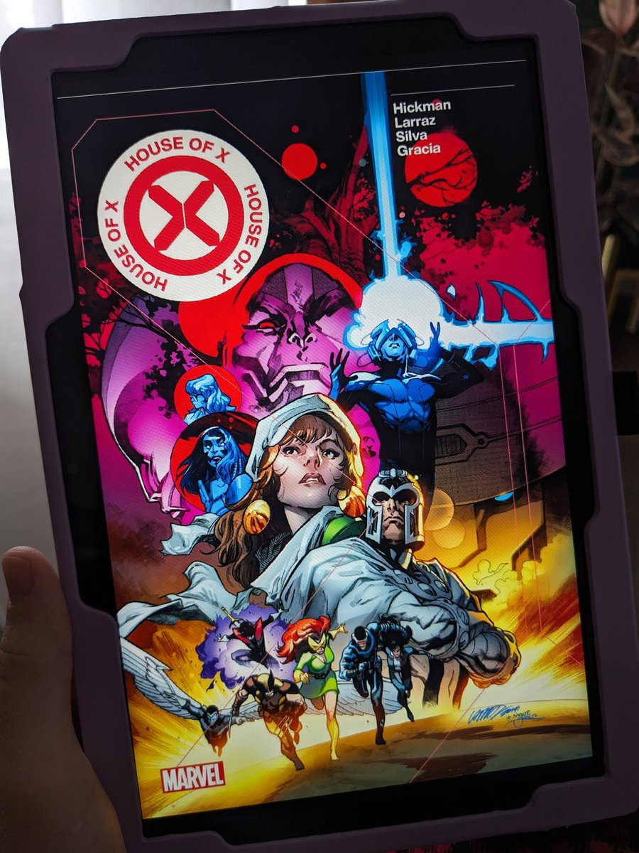 Começando por House of X/Powers of X! Só maluco pra não gostar desse gibi. Hickman resgata os X-Men como épico Sci-Fi. Tudo é muito inteligente e muito emocional. Maior concentração de frase de efeito por página. Depois de anos, terminei um gibi dos X-Men genuinamente feliz.