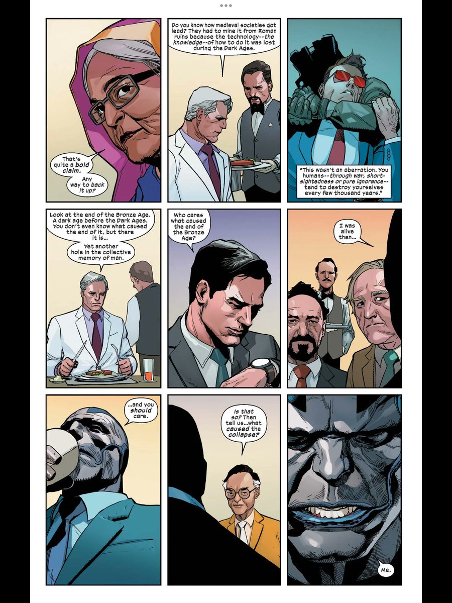 A revista solo dos X-Men do Hickman é ótima. Tudo funciona e você sente o grande plano do autor para os anos vindouros. Destaque total para a edição em que os X-Men vão a Davos – o exemplo máximo de como Hickman escreve um ótimo Apocalipse e como ele é fantástico na Era Krakoa.