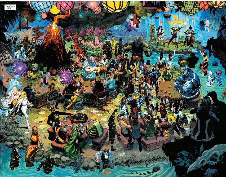 E também momentos de vida comum. Uma coisa que eu acho legal é que os mutantes passam o tempo todo enchendo a cara e transando na ilha. E isso é um elemento perfeito na ideia de que agora eles têm um pouco de paz.