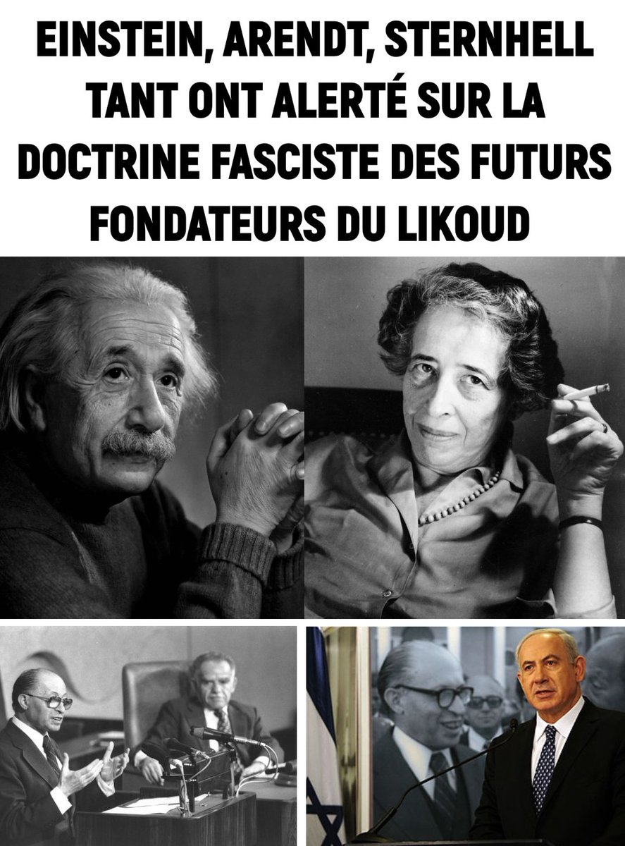 Il ne sera pas utile de revenir en détail sur les origines fascistes du Likoud, qu'Einstein, Arendt, Sternhell ont pu dénoncer. Ce sera à la fin de ce Thread. 3/20