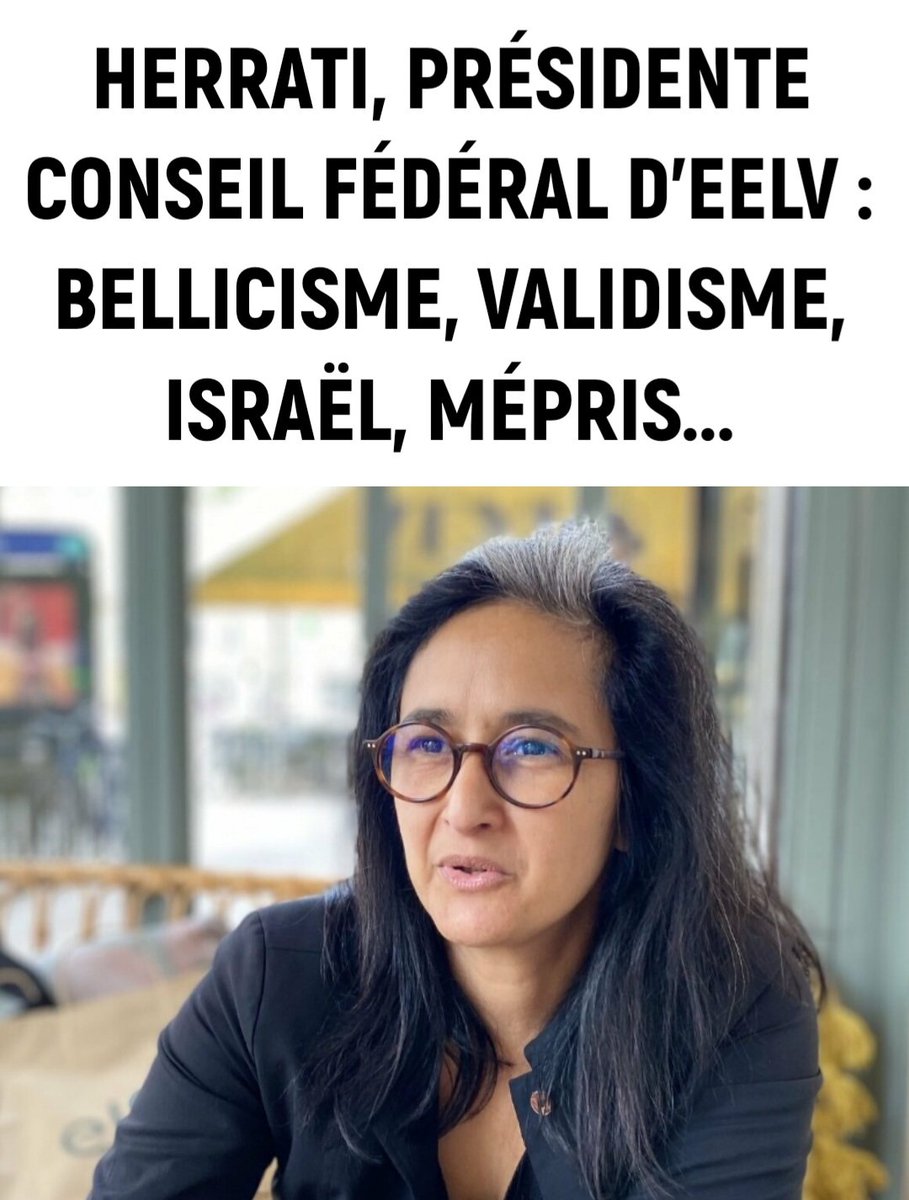 Les membres du bureau exécutif d'EELV et la secrétaire Tondelier ne réagissent pas face aux emportements violents à répétition de la présidente du Conseil fédéral Herrati (ligne Tondelier). Bellicisme, validisme, "riposte" d'Israël, défense bourgeoisie... 2/21