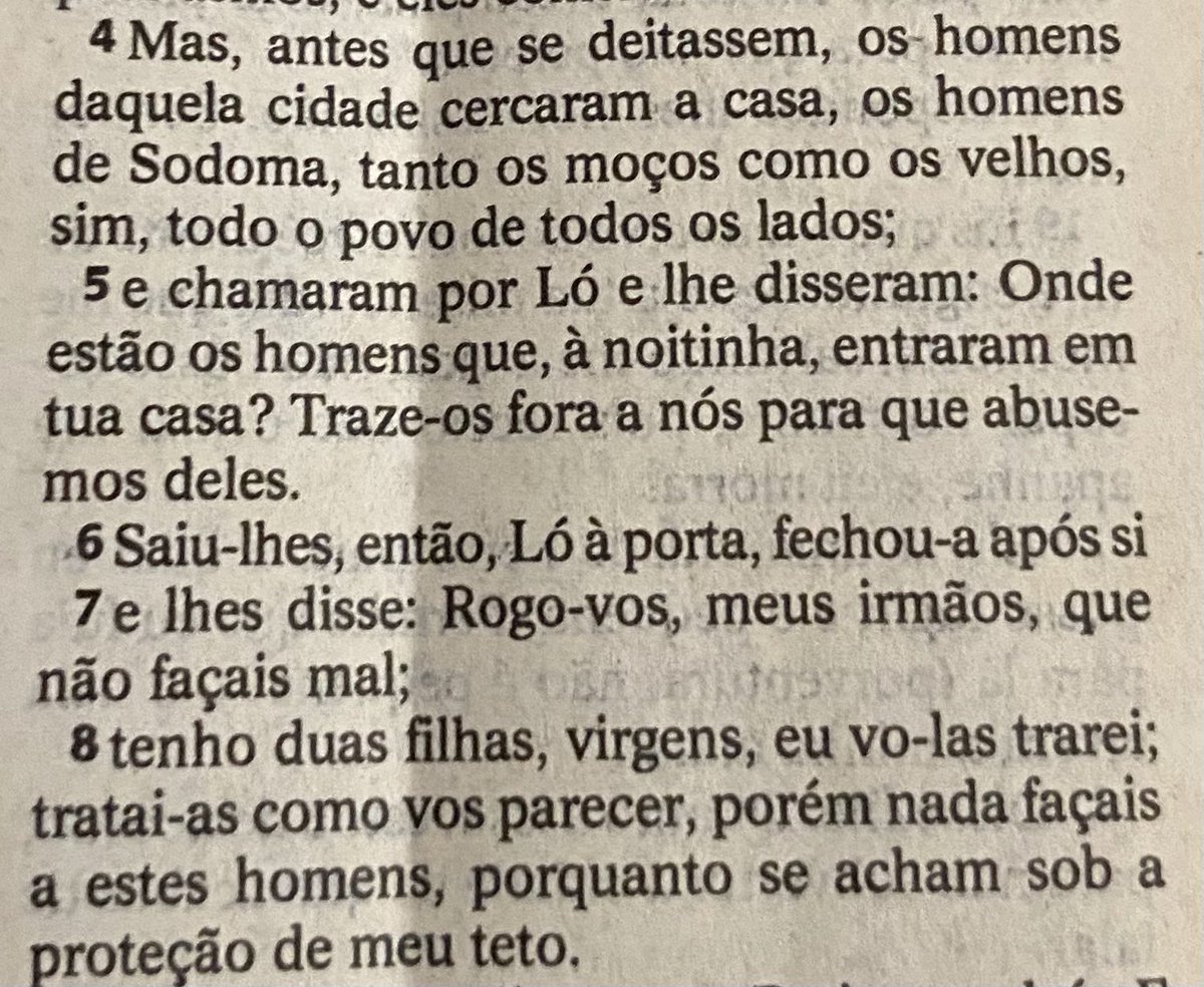 e PIORA: os anjos foram para aquele lugar INÓSPITO e as pessoas queriam abusar eles. ló, querendo muito receber o título de pai do ano, ofereceu as PRÓPRIAS FILHAS para serem abusadas. meu irmão, por muito menos suzane richthofen fez o que fez.