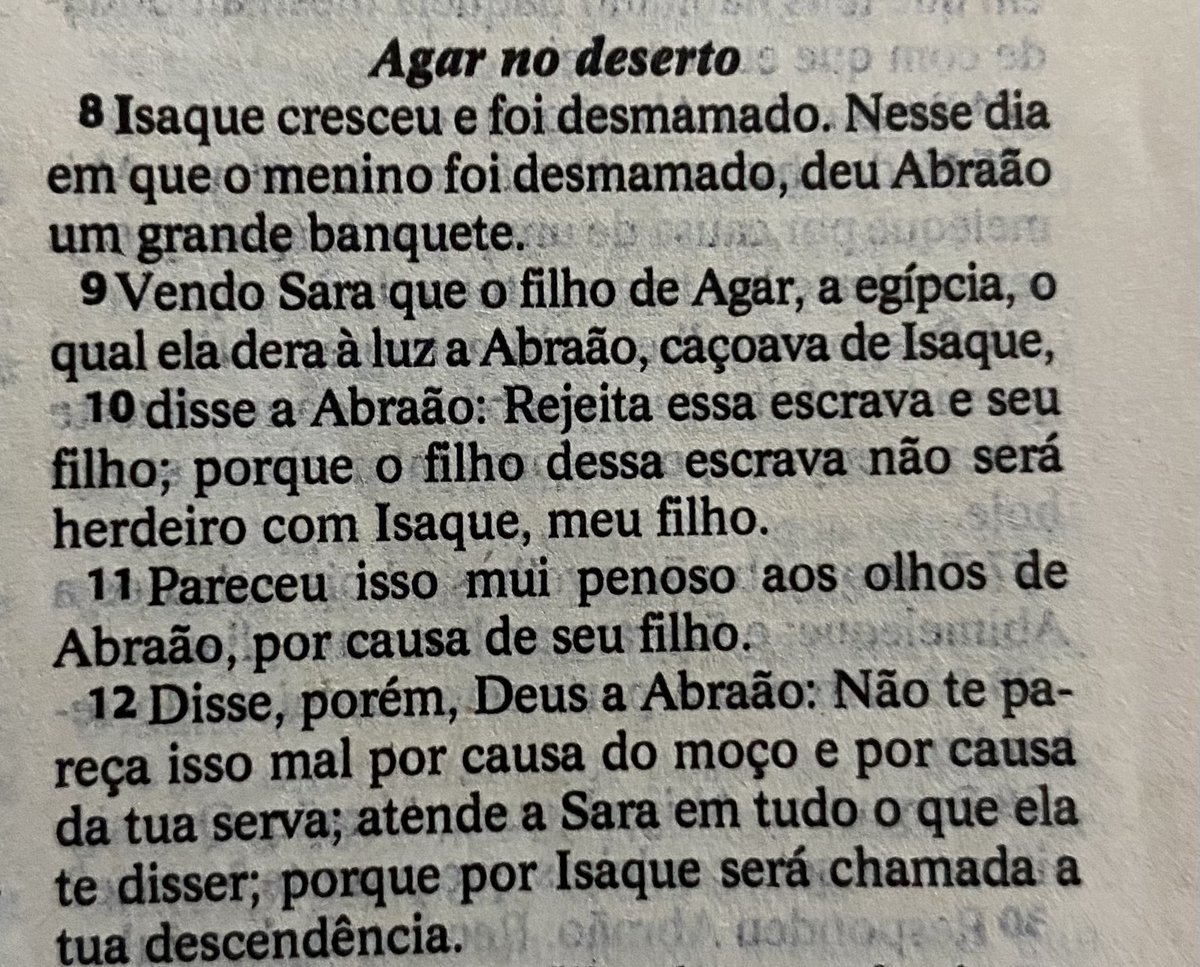 véi, sara e abraão não podiam ter filhos pq sara era estéril, até aí tudo bem. só que sara teve a brilhante ideia de pedir pra abraão fuder no pelo com a emprega deles E ELE ACEITOU E ENGRAVIDOU A MONA (e ela humilhou sara pq conseguiu engravidar). eu tô horrorizada. que babado.