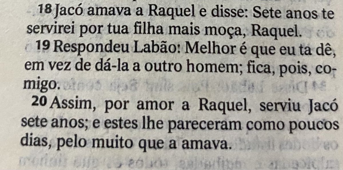 confesso que shippei muito jacó e raquel, imagina que foda vc encontrar alguém disposto a trabalhar 7 anos de graça só pra conseguir casar com você? (tweet com prazo de validade levando em consideração as atrocidades que tem no antigo testamento
