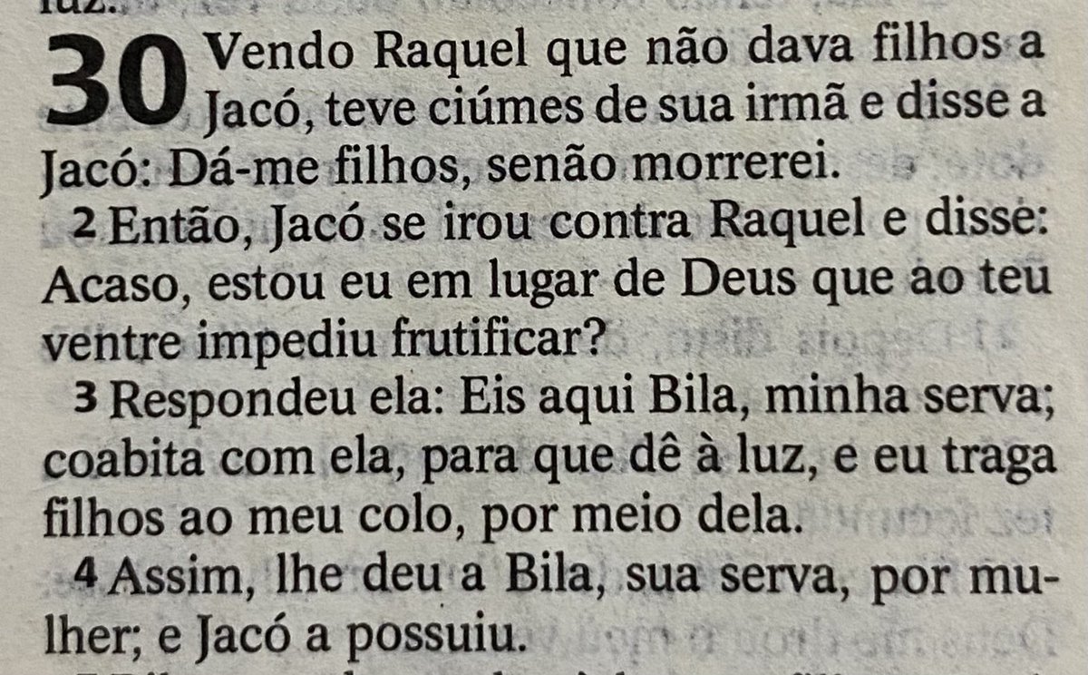 meu tweet sobre raquel e jacó morreu MUITO cedo. tô na parte em que raquel tá pedindo pra jacó jogar dentro e ele rebatendo dizendo que o útero dela tá criando até teia de aranha. e a solução? mais uma vez engravidar uma escrava. essa galera NÃO CANSA DE SER MALUCA.