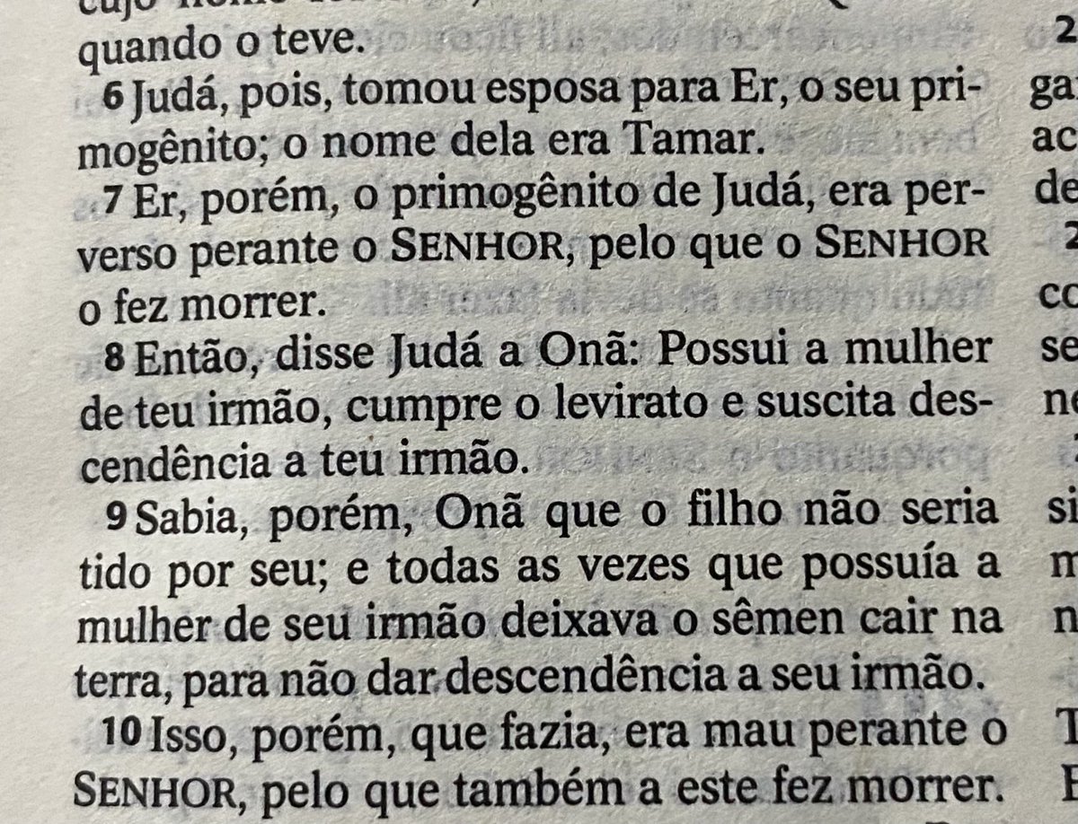 judá arrumou uma mulher pro filho dele, só que deus não gostava do cara e matou. judá então decidiu oferecer a mulher pro outro filho, só q o cara não queria g*z@r dentro da cunhada e deus MATOU ele por isso também. (piora)