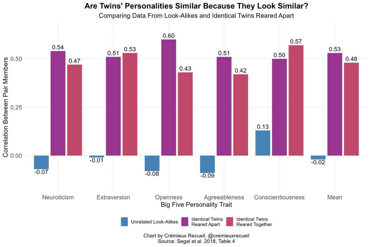 The other thing is that twins reared apart and together have similarly similar personalities.