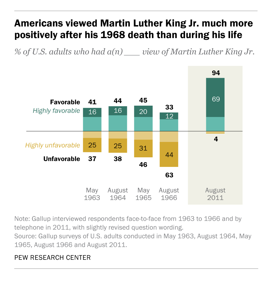Near his death, Whites were maybe one-quarter favorable to MLK, and most of that favorability was weak.