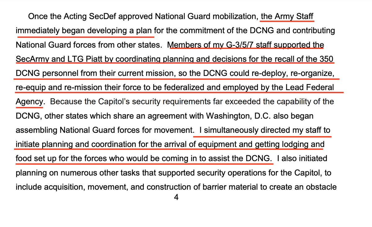 All four testified that the Army and "senior leaders" didn't understand what the National Guard does. They conflated the Guard with the military and didn't want the "military" on U.S. streets. 12/