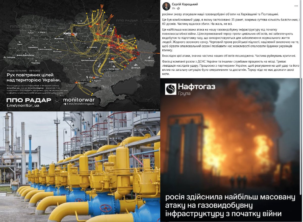 The Russians carried out the most massive attack on Ukraine’s gas production infrastructure to date, according to Serhiy Koretskyi, head of the Naftogaz Group. “It was a combined strike involving 35 missiles, including a significant number of ballistic ones, and 60 drones. 1/6
