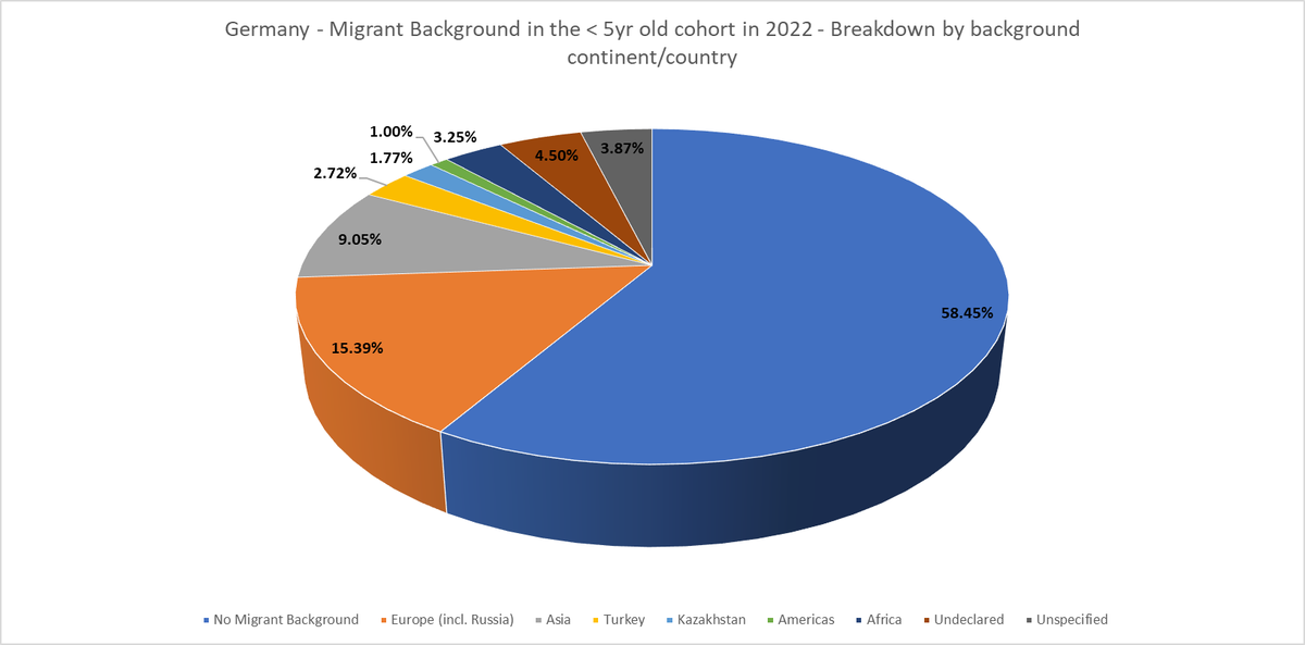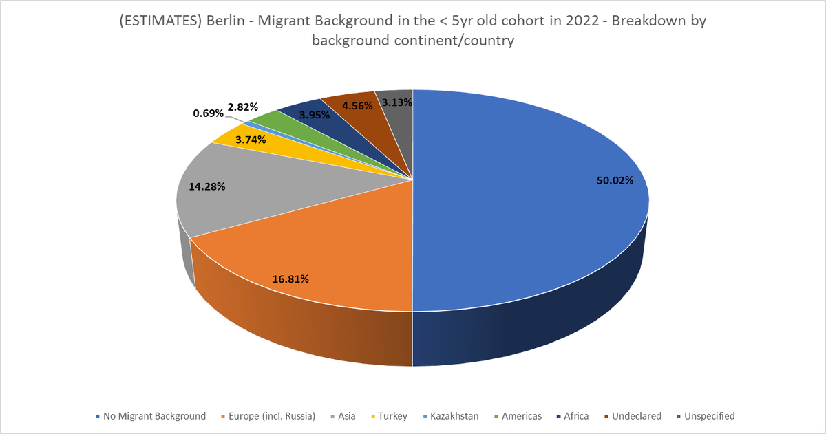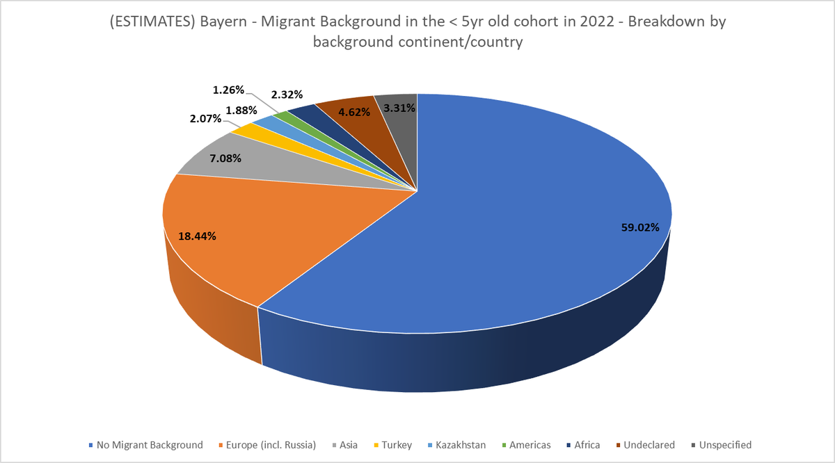 This thread will show the breakdown in each German State by migrant background, as well as my estimates for the < 5yr old age cohort in each German state.