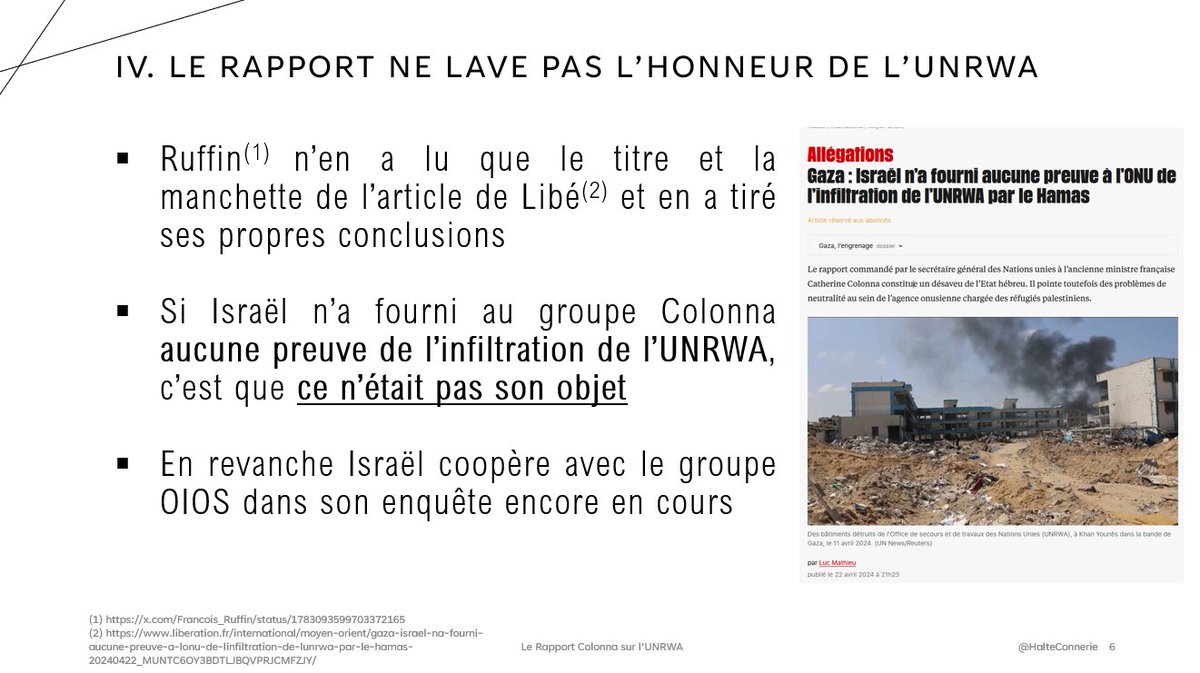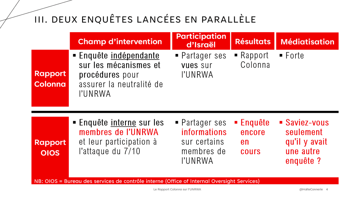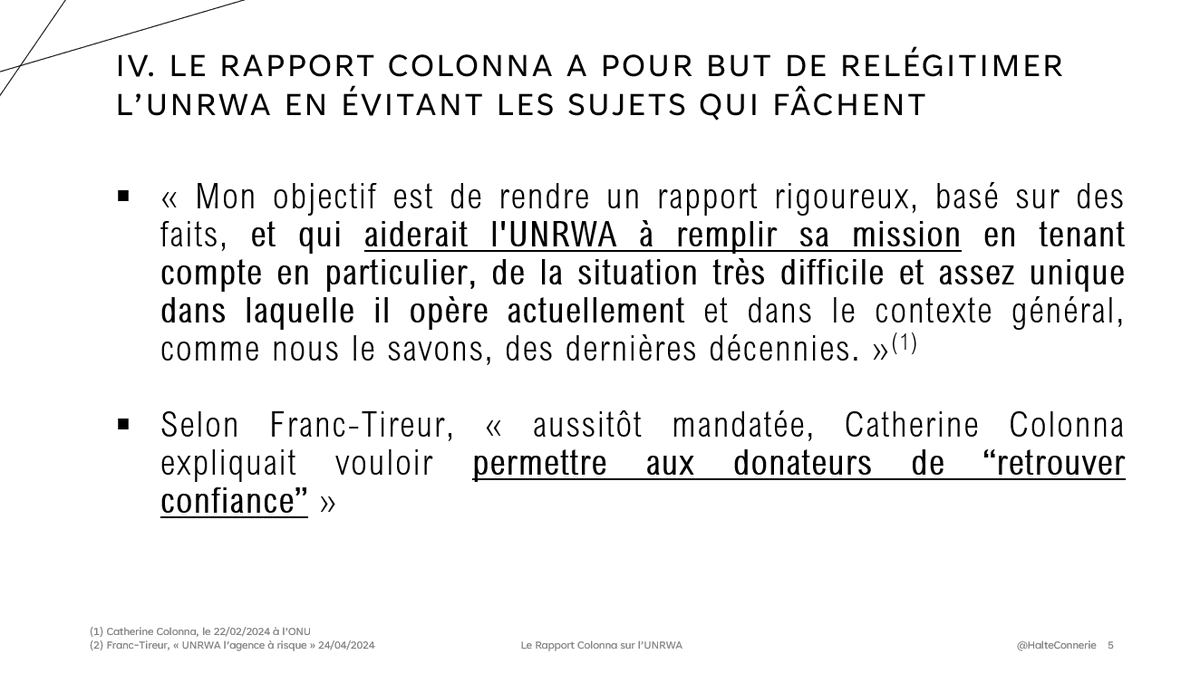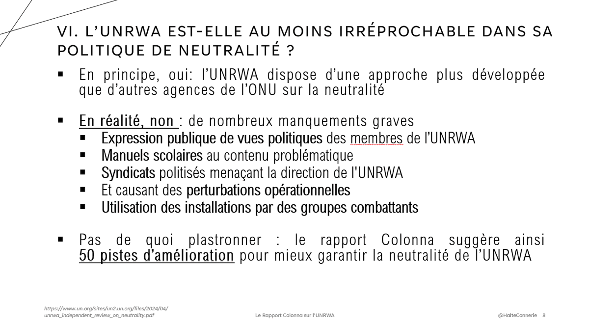 On peut dire d'autres choses sur l'UNRWA, en attendant le vrai rapport, de l'OIOS (sera-t-il public ? J'en doute) mais pour ne pas doublonner je vous conseille le Franc-Tireur du jour ou le travail de @HillelNeuer (que les propagandistes détestent mais ne réfutent pas)