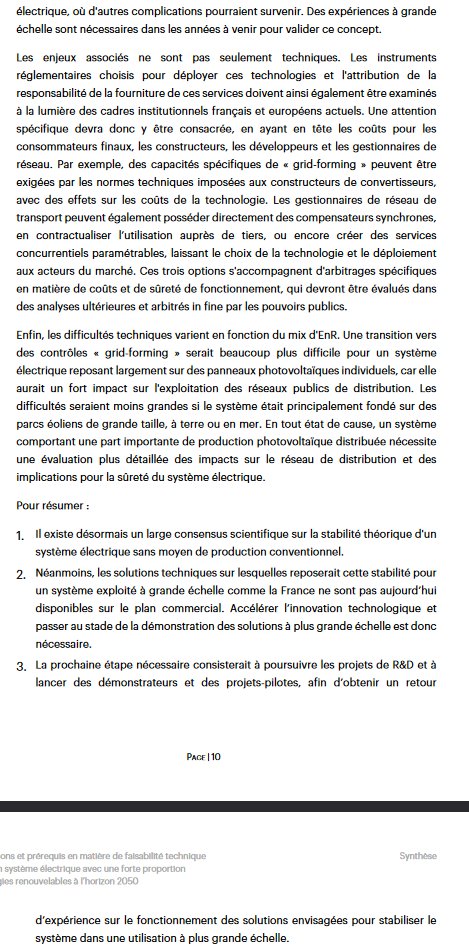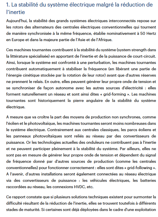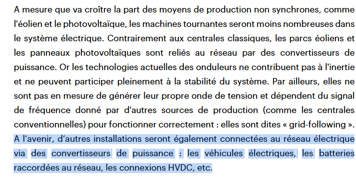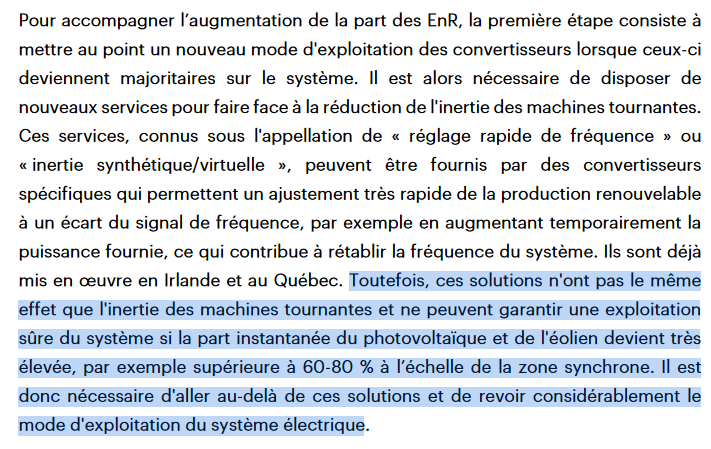 Ainsi, dans son rapport, l'IEA-RTE estimait la limite de production non-synchrone (dans le rapport éolien et PV) à 60-80 % pour pouvoir garantir la sûreté d'un réseau synchrone.
