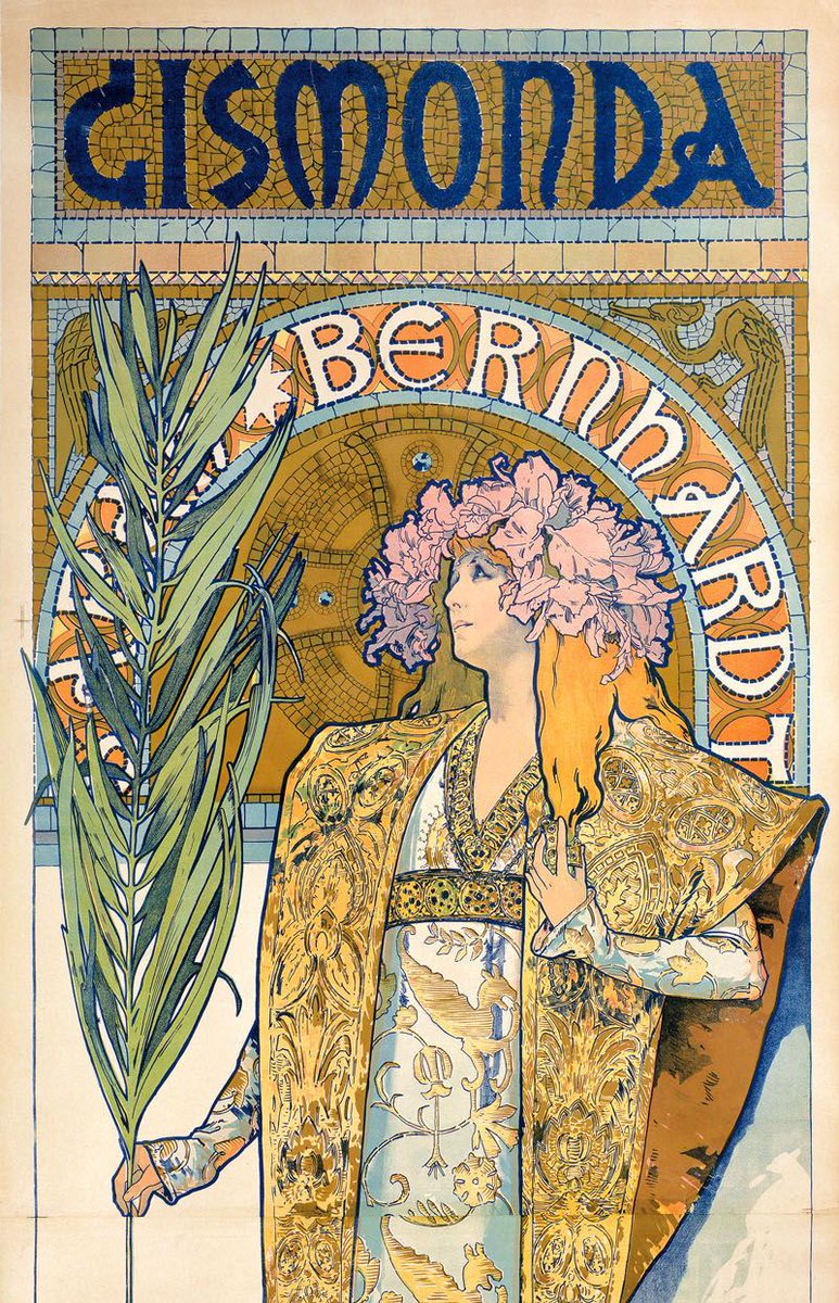 Gismonda, 1894 - Mucha’s breakthrough came with this poster for Sarah Bernhardt’s play. Bernhardt herself said, “You have made me immortal.”