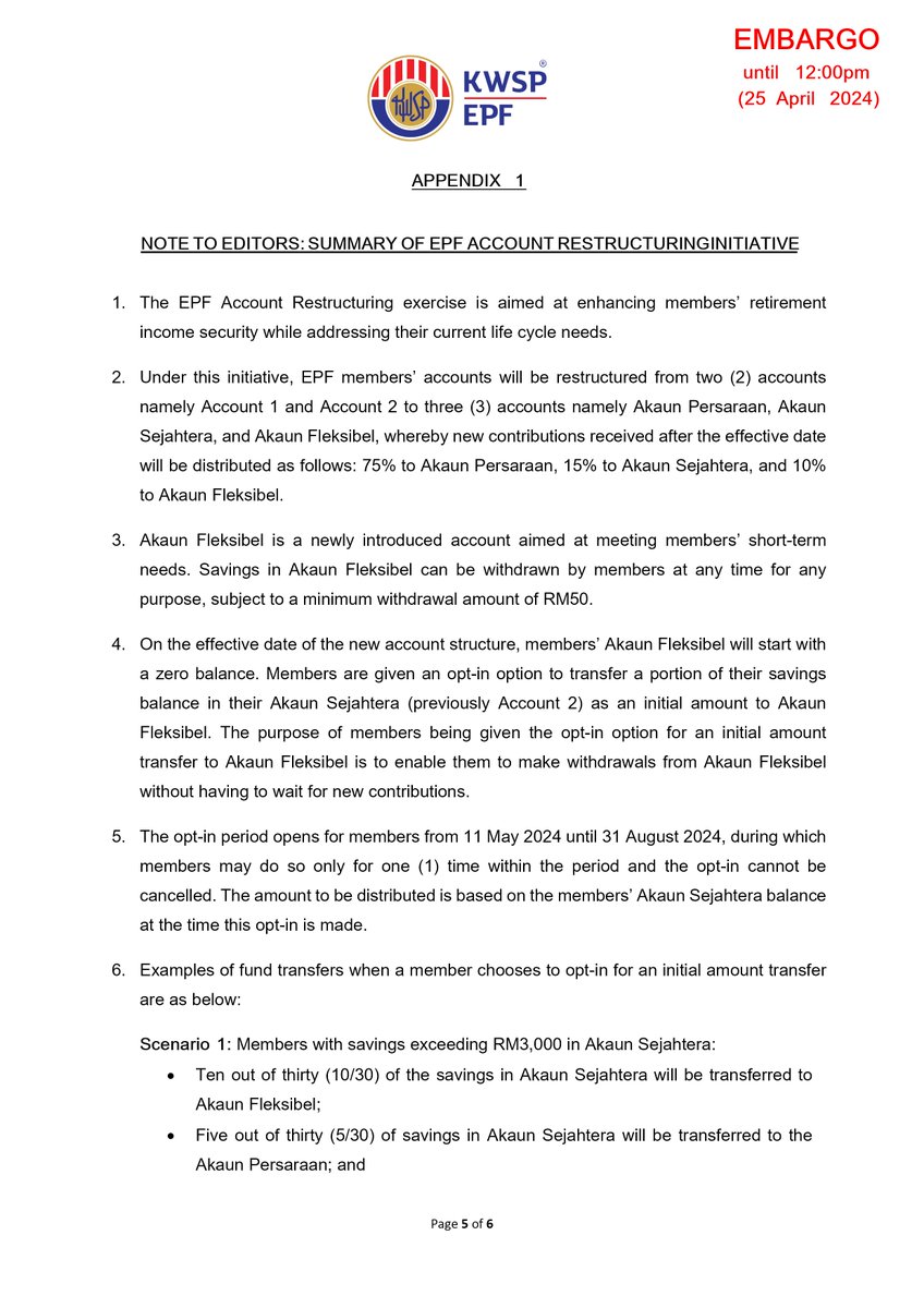 1. EPF has announced that members below age 55 will have their accounts restructured into 3 accounts, from May 11, 2024.