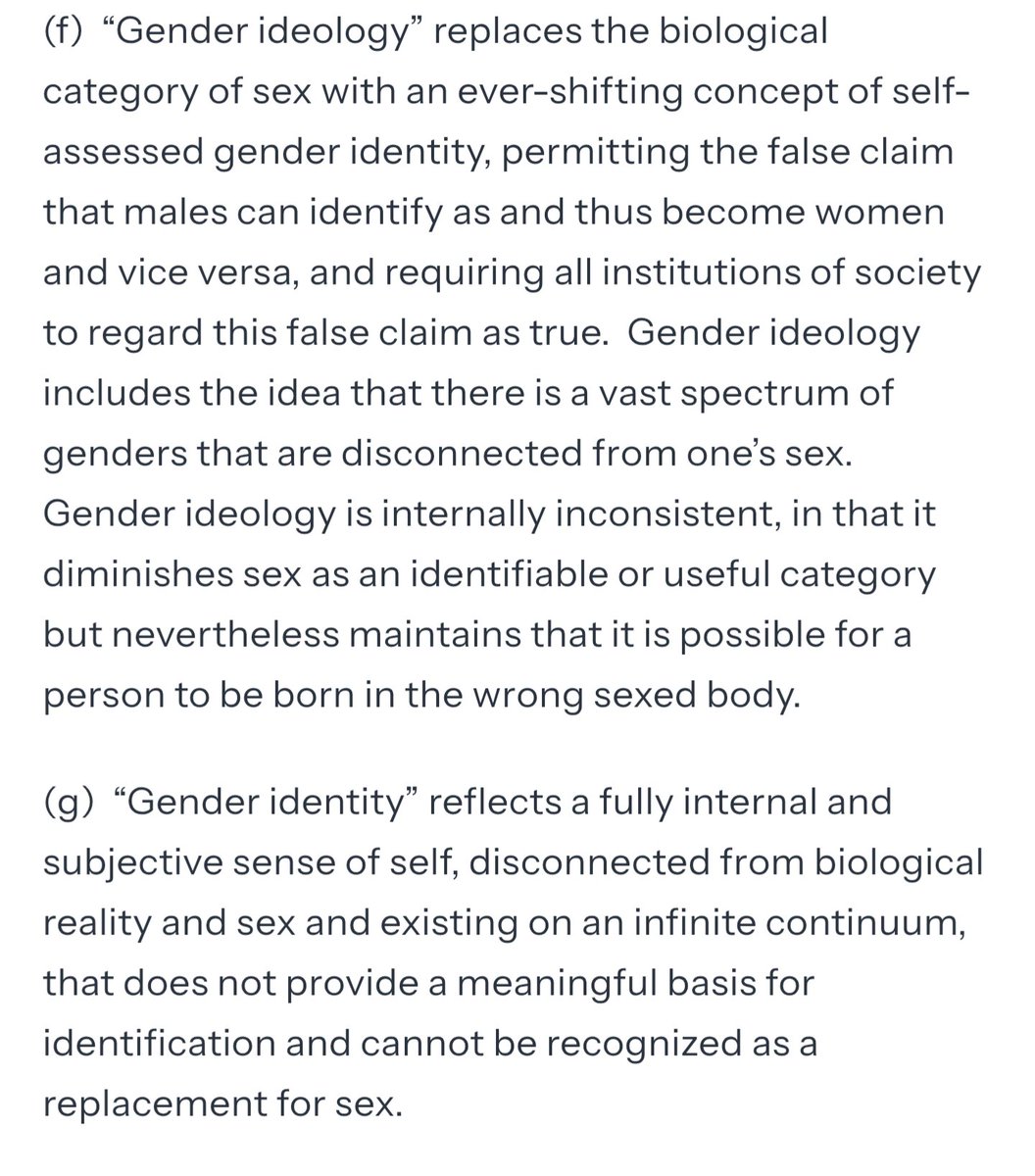 they're so scared of using the words "gender identity" they literally scrapped it everywhere but one spot and just reference it repeatedly. this is fucking insane