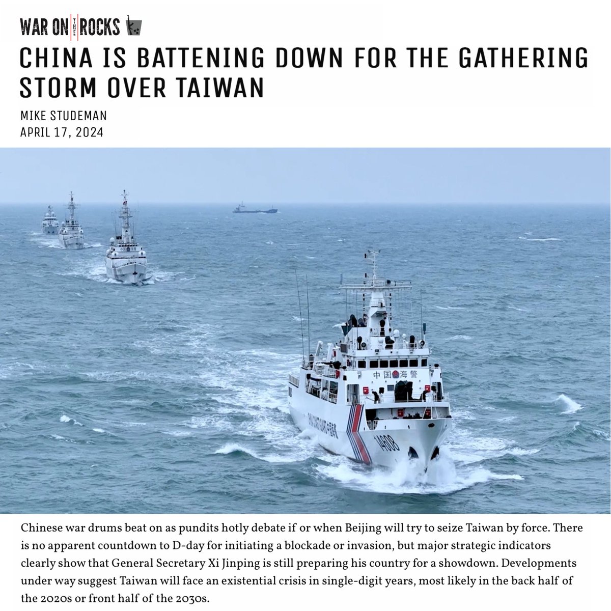 “He may conclude he has everything to gain & nothing to lose by waiting. Xi’s absolute prioritization of security over the economy is the most telling of all war preparation indicators.” Must-read👇