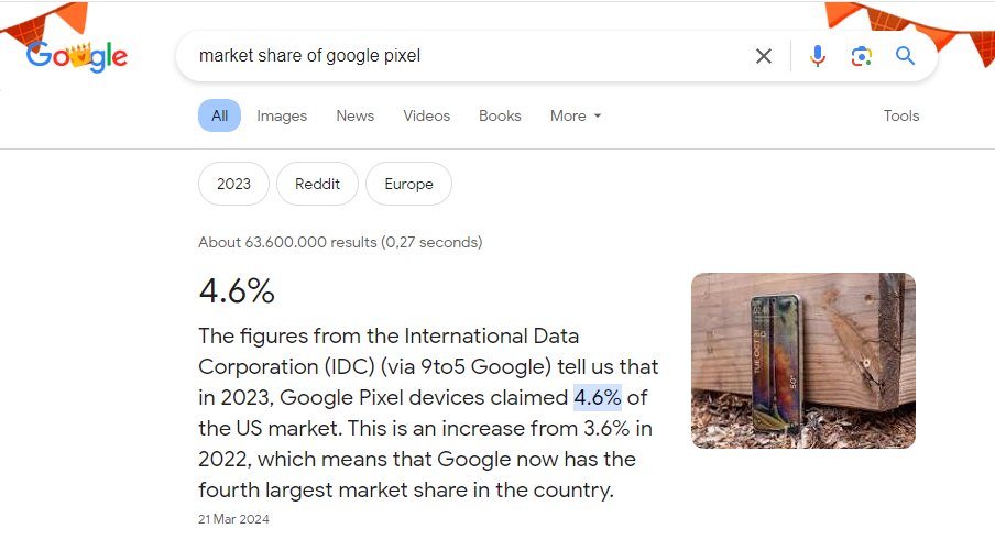Even the Google Pixel only gets 4.2% market share of the total.