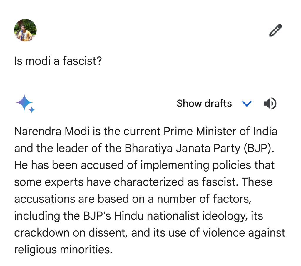 Gemini Openly Declared him a Fascist and after that Indian Government sent an official Notice to Google and asked for an answer.