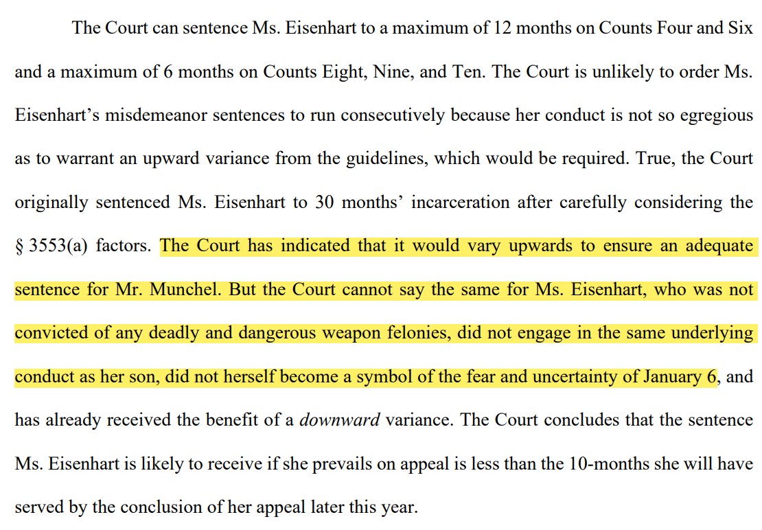 Two 1512c2 convictions drove Munchel's excessive prison sentence. But Lamberth, like many of his colleagues, warns that he will seek other upward variances (enhancements basically) to STILL ENSURE Munchel serves out his 57-month sentence if SCOTUS reversed 1512c2 in J6 cases.