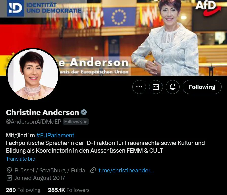 #6 - MEP Christine Anderson (@AndersonAfDMdEP)