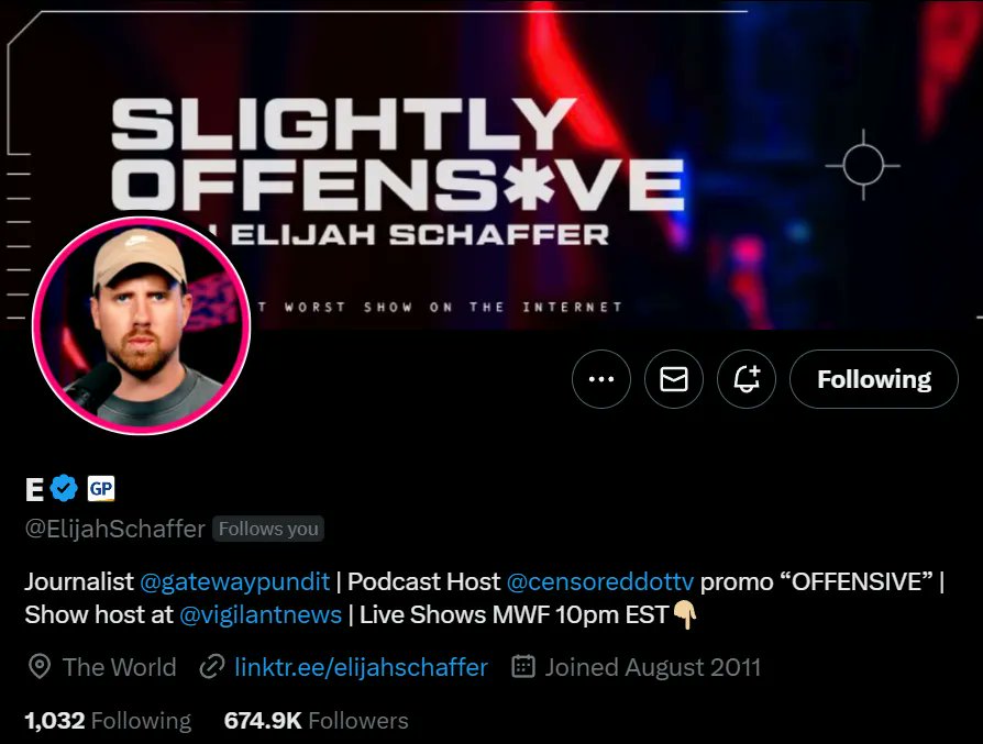 #13 - Elijah Schaffer (@ElijahSchaffer)