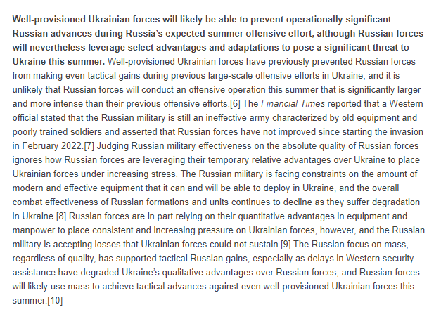 6/ ...during Russia’s expected summer offensive effort, although Russian forces will nevertheless leverage select advantages and adaptations to pose a significant threat to Ukraine this summer.