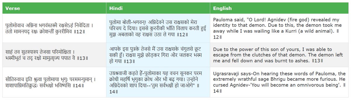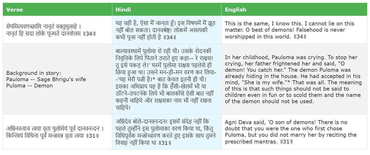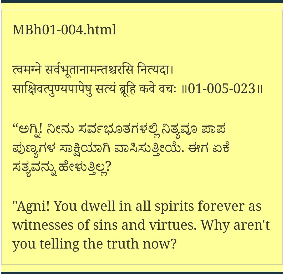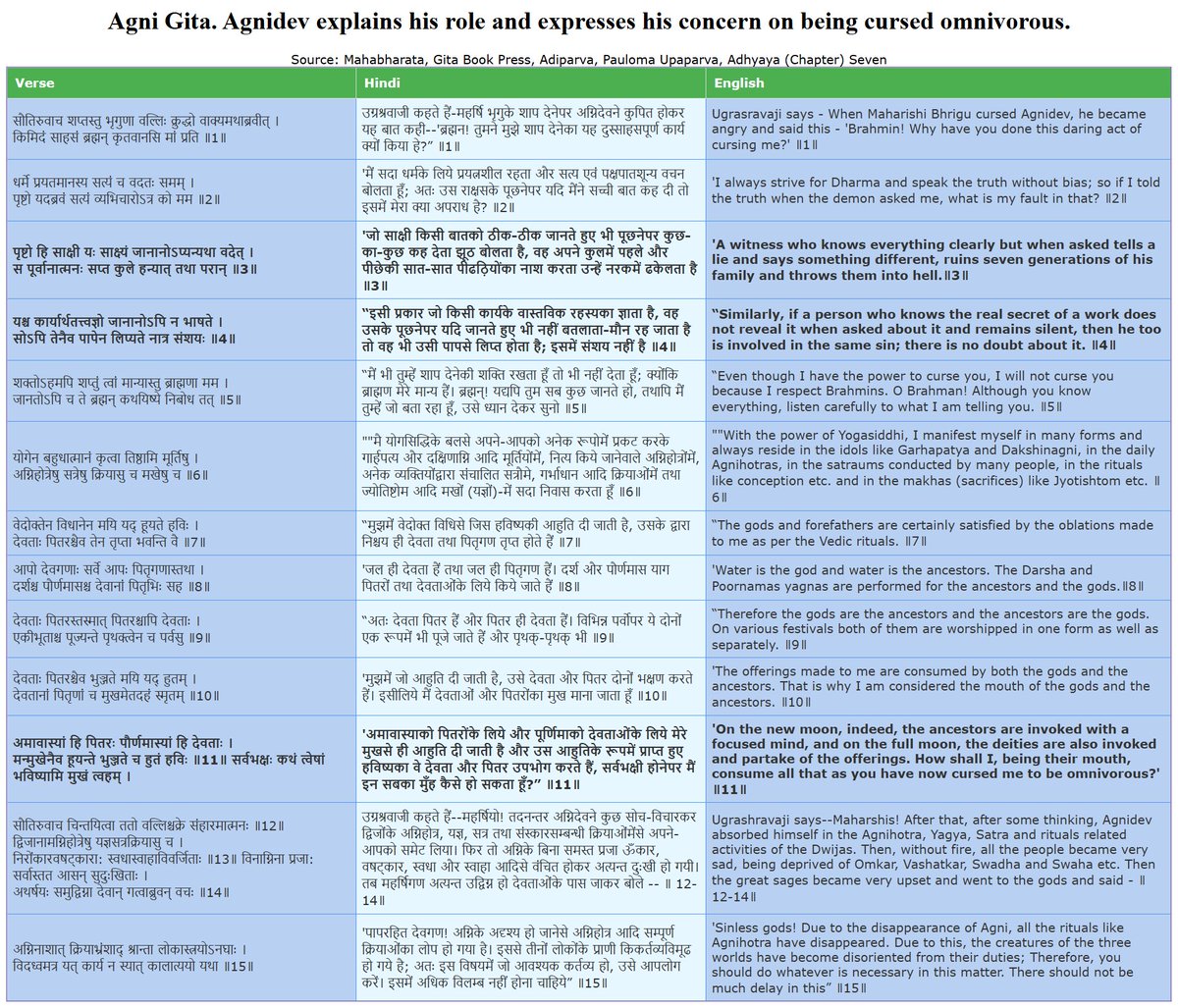 Attached also is a quote from Gitabookpress Mahabharat from the same Pauloma Parva, in which is why Agni says it will never lie. So if we sin, that's the reason why positive energy in us may disappear by that much quota.