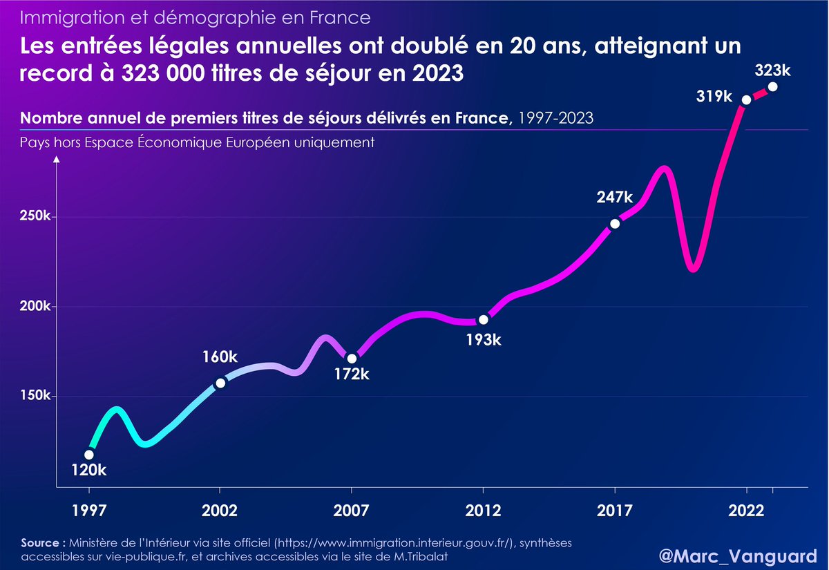 1⃣ Le nombre de titres de séjour accordés EXPLOSE et atteint un nouveau record historique.