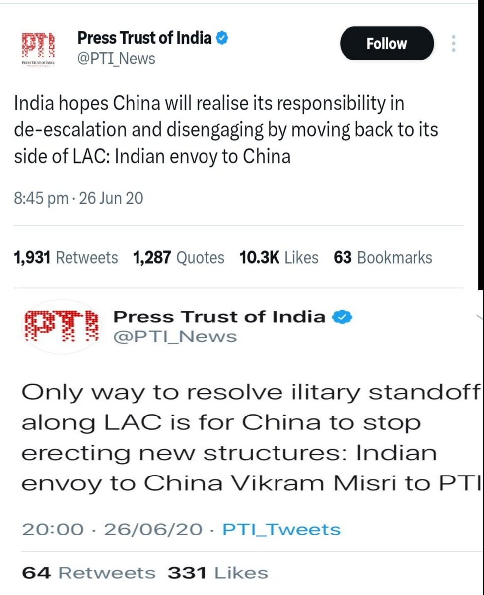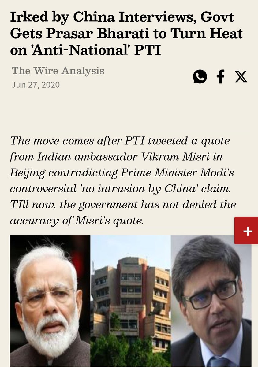 26/6/20 PTI interviewed & quoted the Indian ambassador in Beijing Vikrant Misri.