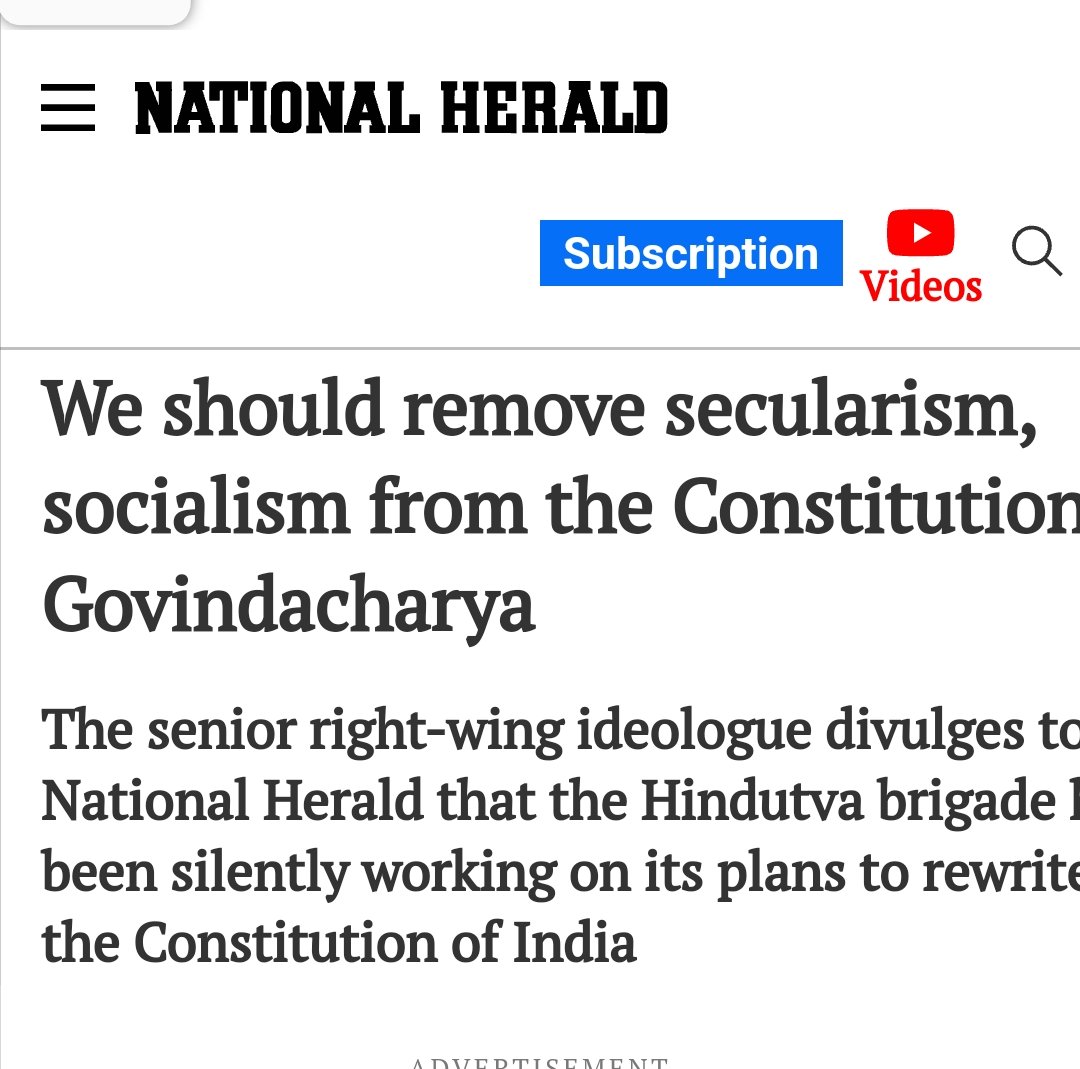 "Our constitution is so vague, non-specific & basically a continuation of the Western philosophies of Hobbes, Locke & Kant...We Will Rewrite the Constitution to Reflect Bharatiyata." 3/23