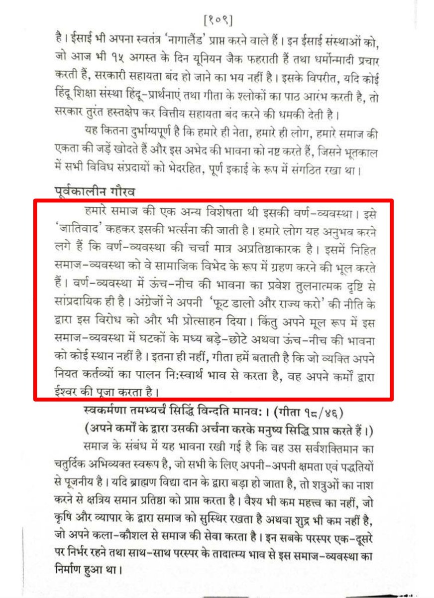 In the 'Bunch of Thoughts' he continued rhetorics page after page glorifying the Varna System or Caste vocation.