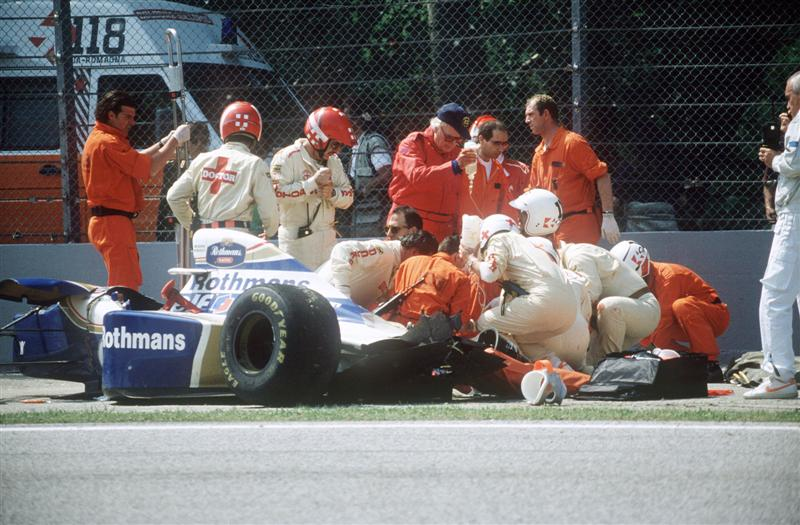 Mas os fiscais o impediram. Os médicos já estavam atuando, Sid Watkins já estava ajoelhado ao lado do carro. Não tinha o que fazer. Só sentar, assistir e torcer.
