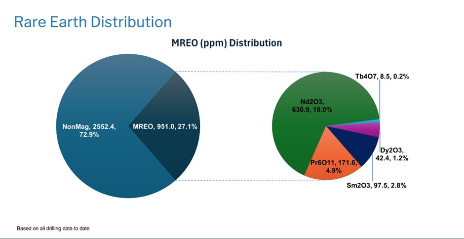 MREO = magnet rare earth oxides (i.e. Nd, Pr, Tb and Dy), and these are essentially the only payable rare earths contained.