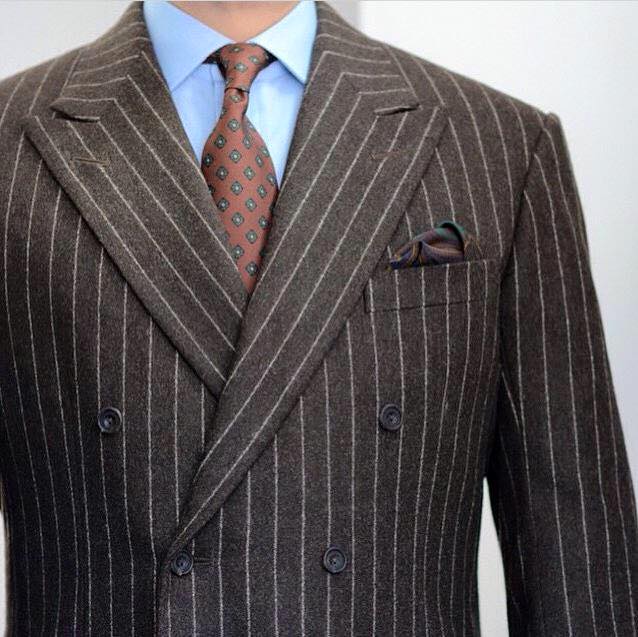 You still see this in the best bespoke. In pic one (a suit by Steed in the UK), the chalk stripe flows smoothly across the seam that connects the collar to the lapel (known as the gorge). Compare this to pic two, where the pattern doesn't even align across pockets (bad and lazy)