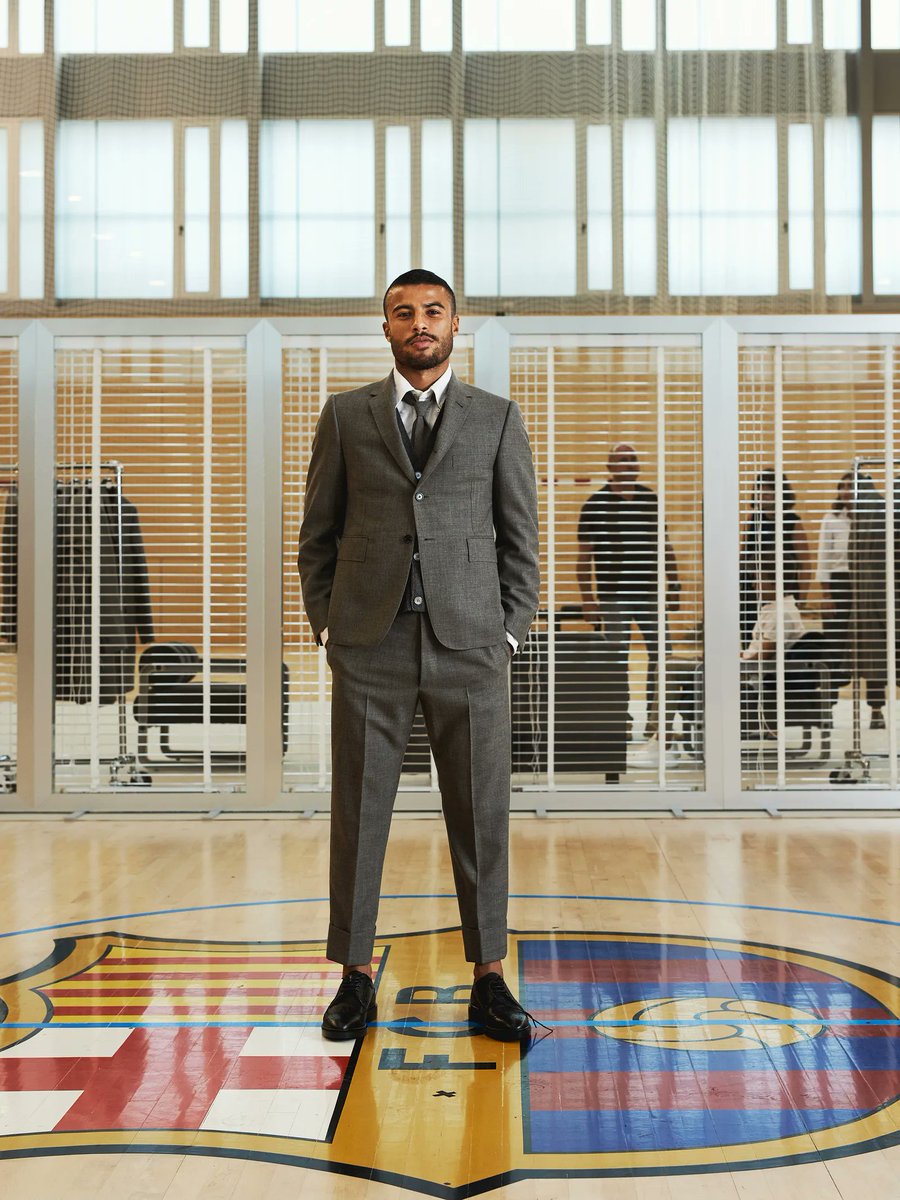 Look at these short Thom Browne suits on football stars Lionel Messi, Philippe Coutinho, Ivan Rakitic, and Rafinha. We can assume they all have V-shaped torsos (Statue of David-esque) because they're professional football players. Yet, the suits make them look anything but.