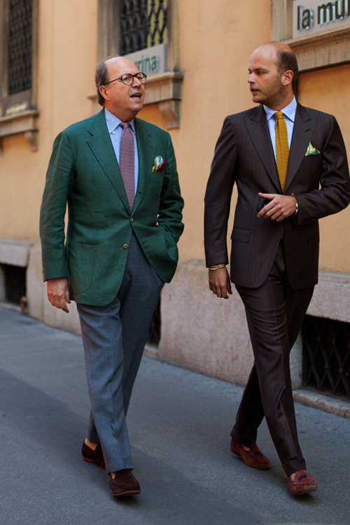 By contrast, I assume that Mariano Rubinacci, head of the bespoke tailoring house Rubinacci, does not have Jackson's figure. Yet, his suit results in that V-shape better because the jacket