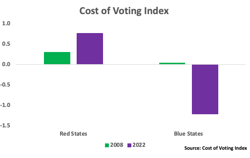 After Shelby County guts the VRA, the “cost” of voting in time/money gets much higher in Red states even as it plummets in Blue states.